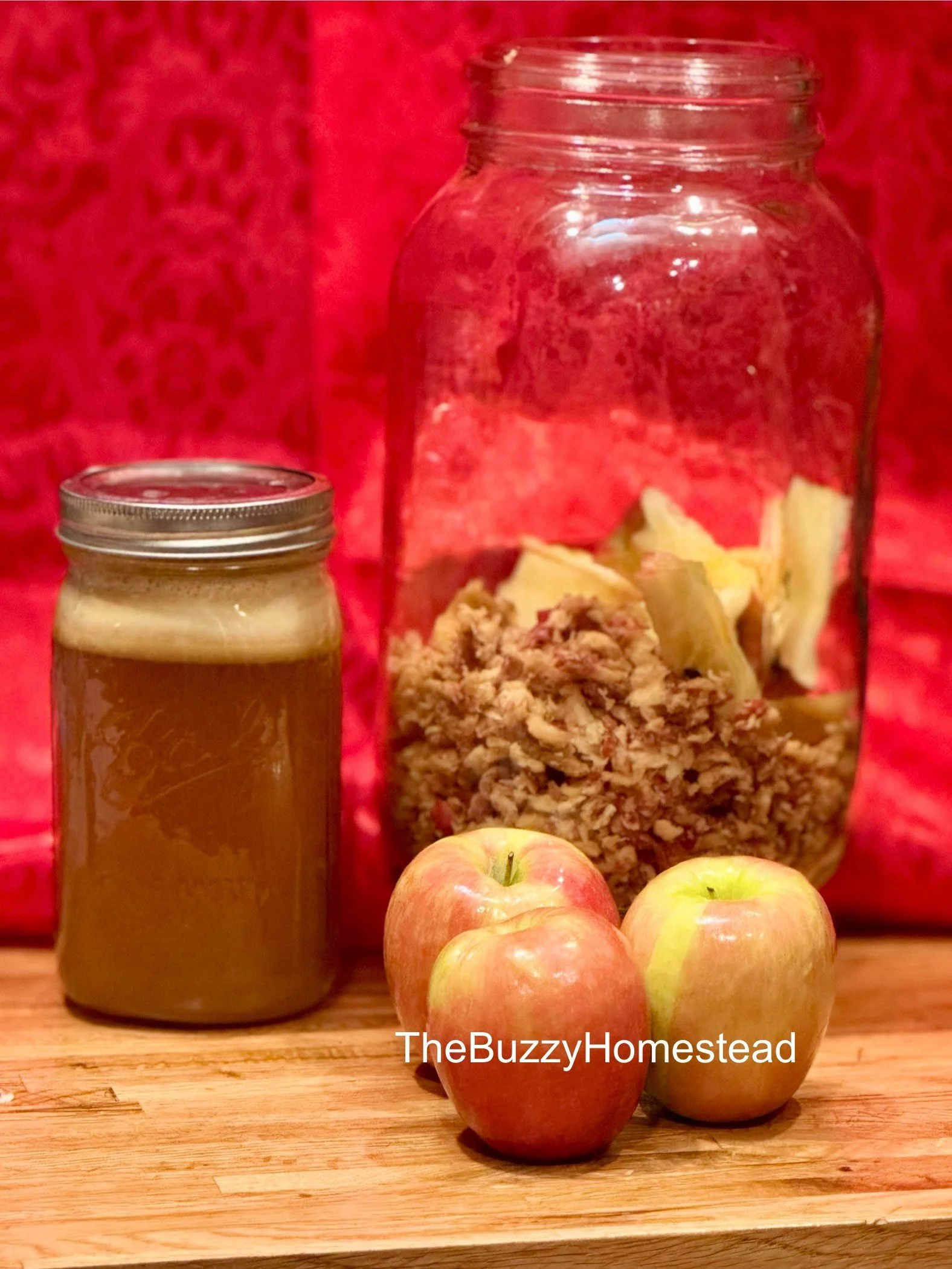 When our granddaughter comes over she loves to help make fresh apple juice. In order to not waste the pulp and cores, I make ACV.